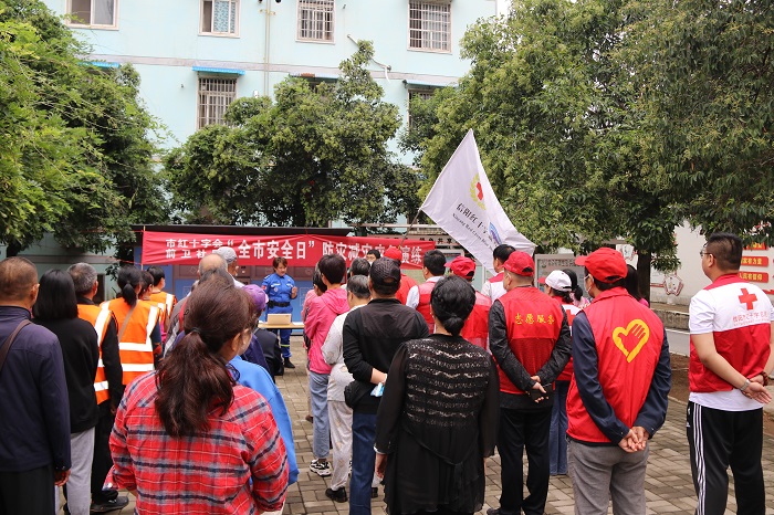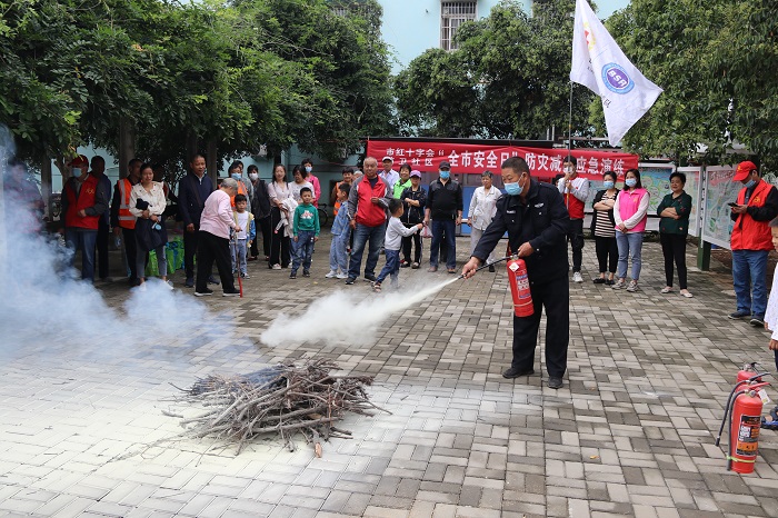 信阳市红十字会携手结对社区开展“全市安全日”防灾减灾应急演练活动