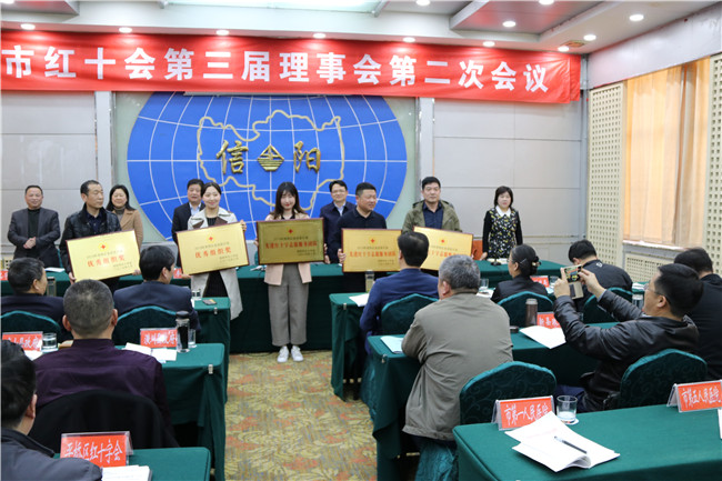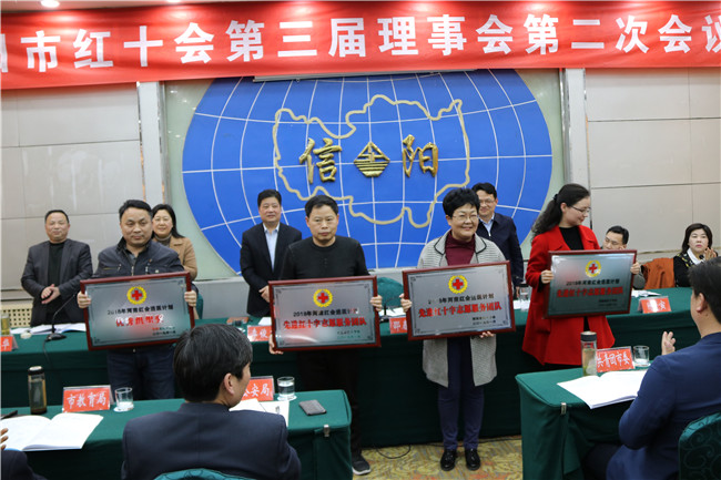 会议审议通过了《信阳市红十字会第三届理事会关于更换、增补理事的议案》,会议还对2018年度“红会送医计划”先进单位、先进个人及爱心企业、爱心人士代表进行了表彰。