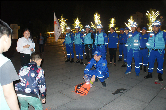 为了确保参加启动仪式的顺利进行,在参加活动前一天晚上,救援队负责人召集所有参加人员集中培训,严明纪律,树立良好形象,同时还开展了自救互救、逃生示范等演练。
