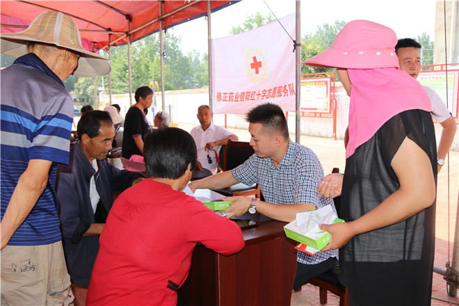 在义诊活动现场,医疗专家们在为群众进行血压检查的同时,还根据应诊者的病情、病史量身制定诊疗方案,对群众日常保健、常见病预防及常用药服用等方面进行了详细讲解和指导。修正药业红十字志愿者们根据专家检查结果免费为村民发放治疗药品,受到了当地群众的欢迎和好评。