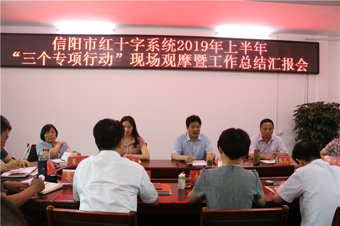 7月16日,信阳市红十字会召开红十字进社区现场观摩会。市红十字会常务副会长李俊杰参加观摩会并讲话。