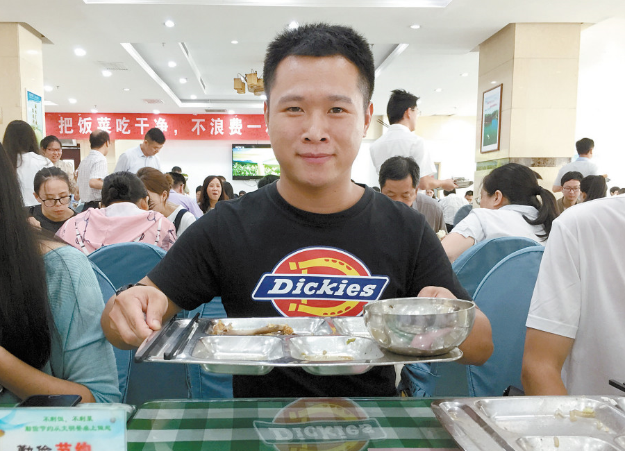 马辉是信阳市红十字会的一名工作人员。在机关食堂就餐,马辉和身边人一样,每天都取适量食物,餐餐“光盘”。