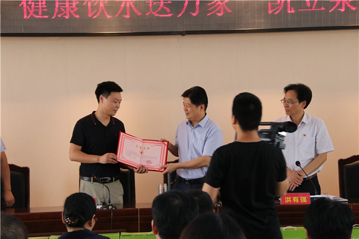 仪式上,李俊杰对爱心企业的无私奉献表示衷心感谢!他说,当前,全市上下正在认真贯彻落实党的十九大和十九届二中、三中全会精神,即将开展“不忘初心,牢记使命”主题教育活动,大力开展脱贫攻坚行动,决胜全面建成小康社会。信阳市红十字会在市委、市政府的正确领导下,正全力投入到“结伴同行脱贫路”、“红十字进社区”、“红会送医计划”等专项行动中,努力通过系列活动帮助基层医疗机构提升整体服务水平,提高广大群众健康意识。在各项活动深入开展的关键时期,深圳市凯立泉环保科技有限公司顺势而为,主动与市红十字会沟通联系,寻找助力脱贫攻坚的契合点和突破口,以不讲条件、不图名利为原则,以奉献爱心、服务基层为宗旨,守初心、担使命,把企业的一片爱心化作贯彻十九大精神、助力脱贫攻坚的具体行动,融入到扶贫济困、关注民生的善行义举中,融入到红十字会服务大局的各项活动中,宣传了红十字精神,传播了社会正能量。爱心企业的善举充分体现了关心群众、回报社会的大爱情怀,彰显了无私奉献、敢于担当社会责任的气质和风范,更大力弘扬了“人道、博爱、奉献”的红十字精神。他要求,浉河区接受捐赠的区直医院、社区服务中心、乡镇卫生院和村卫生室,要接收好、管好、用好爱心企业捐赠的净水设备,让其充分发挥作用,为老百姓带来实实在在的好处;浉河区红十字会要协调区卫健委组织好接收方与捐赠方对接,做好物资接收及安装维护等相关工作。