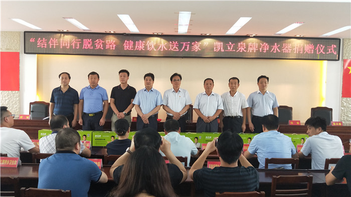 在中秋、国庆双节即将到来之际,9月11日,信阳市红十字会携手深圳市凯立泉环保科技有限公司爱心企业在浉河区卫健委举行“结伴同行脱贫路 健康饮水送万家”净水器捐赠仪式,市红十字会常务会长李俊杰出席捐赠仪式并向捐赠方颁发荣誉证书。