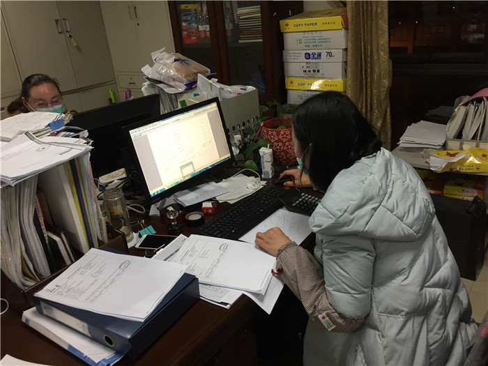 战“疫”打响以来,大家每天从早上来单位一直工作很晚才能回家。办公室郑丹和吕娟两位女同志小孩还小,有时加班到半夜才能回家与家人团聚,中午吃碗方便面就当充饥。当前来捐款的人看到大家忙的不可开交时问她们累不累时,她们异口同声地说,“累是有点累,但这是我们的职责,与战斗在一线的医务工作者相比,算不了什么”。