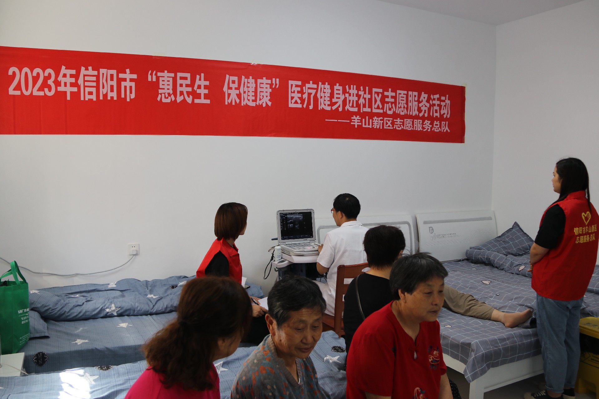 义诊活动由信阳职业技术学院附属医院肿瘤科、妇产科、泌尿外科和神经外科专家组成的志愿服务队为社区居民提供健康咨询服务。志愿者为群众测量血压,认真倾听居民陈述,耐心细致地回答群众的问题,解答他们的困惑。此次义诊活动还为社区居民提供免费的乳腺、甲状腺彩超检查,通过检查结果更为针对的为居民提供相应的医疗指导和建议。