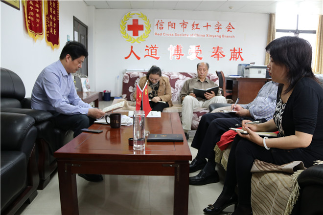5月5日,信阳市红十字会组织召开党组理论学习中心组(扩大)学习会议,传达学习贯彻中国共产党河南省第十届委员会第九次全体(扩大)会议精神,常务副会长李俊杰就贯彻落实会议精神进行安排部署。