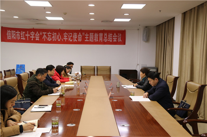 1月20日上午,信阳市红十字会召开“不忘初心、牢记使命”主题教育总结会议,全体党员干部职工参加了会议,市委第一指导组副组长马英丽等一行亲临指导并讲话。会议由党组成员、副会长邢国芝主持。