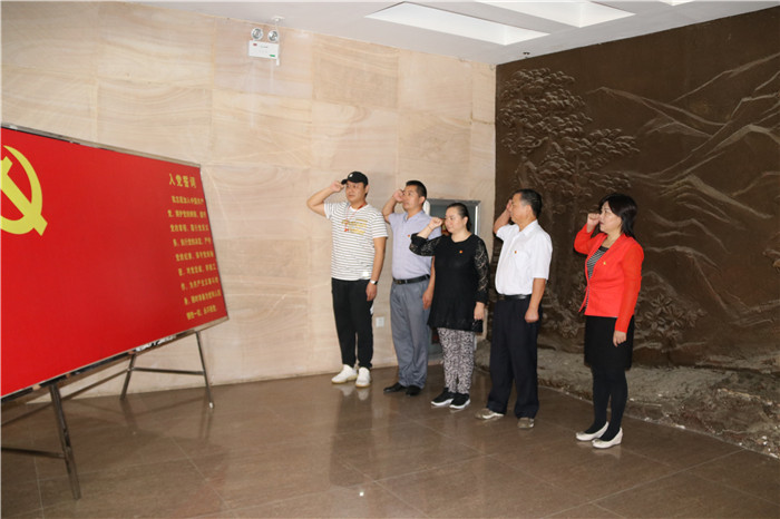 课前,信阳市红十字会组织党员干部参观鄂豫皖革命纪念馆和“不忘初心 牢记使命”主题教育展览,全体党员面对党旗重温入党誓词。