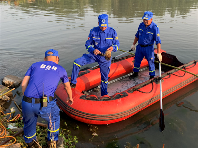22:00,红十字蓝天救援队第一梯队赶到现场开始打捞,天色已暗,周围没有光源,给搜救增加了难度。红十字蓝天救援队志愿者携带专业的声呐、水下摄像头、打捞挂钩、冲锋舟等专业装备,在头灯微弱的光线下克服重重困难开展救援打捞工作,但因天黑水深打捞未果,暂停救援。次日2:00队员安全返回。14日4:00第二梯队再次赶到达地点开始打捞,上午9:30终于将溺水者成功打捞上岸并交给公安人员及家属。可惜的是,由于溺水时间太长,溺水者已无生命体征。