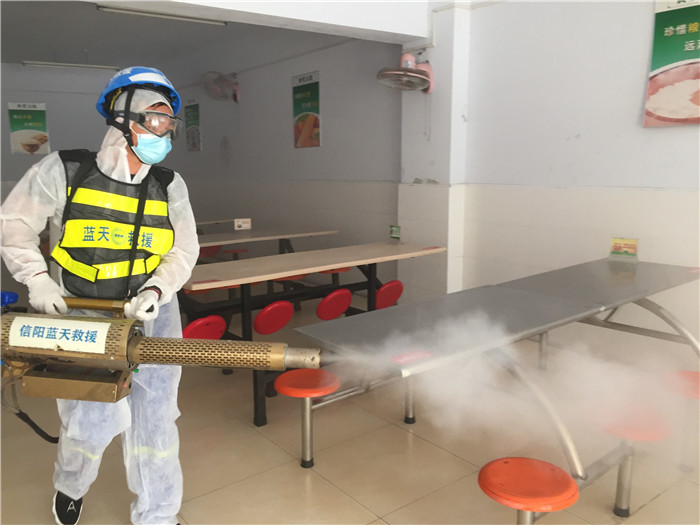 信阳红十字蓝天救援队义务消毒助力学校复学