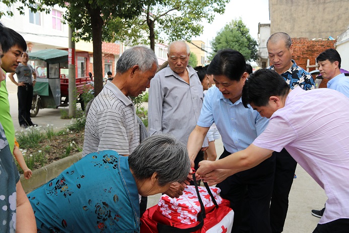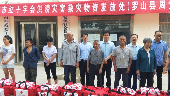 7月29日,信阳市红十字会在罗山县周党镇开展洪涝灾害救灾物资发放活动,罗山县政府,市、县红十字会负责同志以及周党镇受灾群众代表共30余人参加活动。
