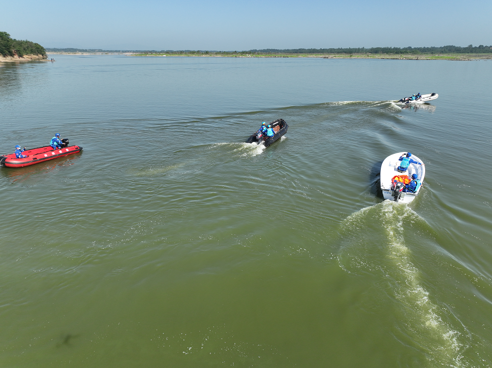 6月16日,救援实施演练阶段,模拟出山店水库整体水位上涨,在游河乡高湾村郑湾组附近,有6名抢收农作物群众被困,其中有3名群众欲游泳自救被困水中。信阳红十字蓝天救援队接到市红十字会救援实施紧急出动指令后,迅速前出开展以搭建帐篷、转移安置群众、救护伤病员、慰问受灾群众和紧急水上救援为具体内容的实景演练。