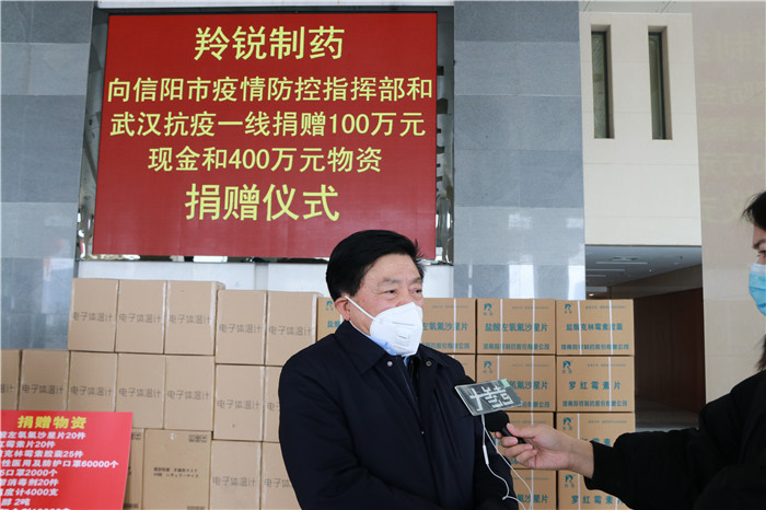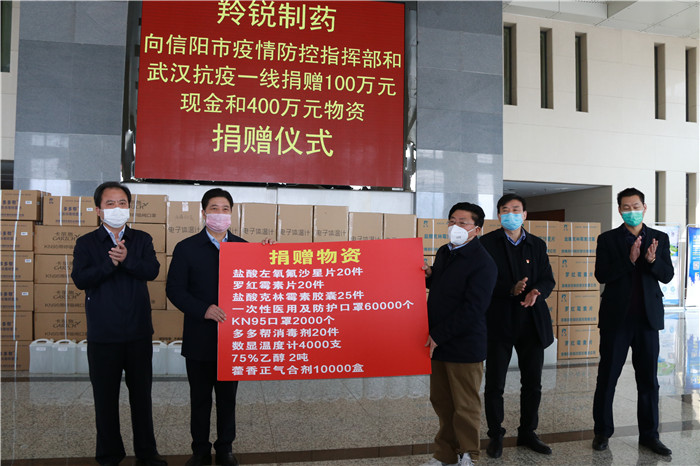 河南羚锐制药股份有限公司党委书记熊维政表示,新型冠状病毒感染的肺炎疫情牵动着全国人民的心。羚锐制药作为老区的一家知名医药上市公司主动承担责任,第一时间成立了支援疫区工作小组,决定向武汉抗疫一线和信阳市防疫指挥部捐赠100万元现金和口罩、消炎抗菌药品等价值400万元物资。自1月23日起,公司已组织多批次加班生产和捐赠活动并将继续。下一步,公司将持续关注疫情发展情况,紧锣密鼓地筹备有效抗病毒产品的复产工作,尽快将当前防控疫情产品投放一线。同时,公司将全力贯彻落实防疫相关要求,积极做好公司员工的疫情防控工作。