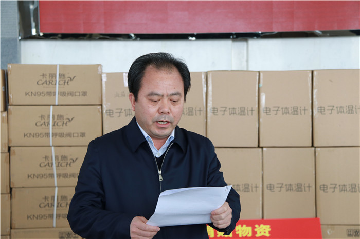 曹新博首先代表市委、市政府向羚锐集团的善行义举表示衷心的感谢!向关心、支持信阳疫情防控工作的各界朋友表示崇高的敬意。曹新博说,我市是河南的南大门,疫情防控工作形势十分严峻。我市募捐活动开展以来,从企业到个人、从城市到农村,社会各界都在积极行动,踊跃捐钱捐物,为抗击疫情贡献了力量、汇聚了暖流。羚锐集团作为老区企业的优秀代表,作为我市重点医药企业,挺身而出、冲锋在前,向抗疫现场捐赠紧缺物资,体现了老区企业高度的社会责任感、使命感。无论是爱心企业、爱心人士,还是战斗中疫情防控一线的工作人员,都是面向疫情的“逆行者”,希望大家在做好自身防护工作的同时,保持定力、勠力同心,共抗疫情、共克时艰,共同打好这场疫情防控阻击战。希望红十字会管好用好受助物资,让紧缺物资真正用在刀刃上,发挥最大效益。