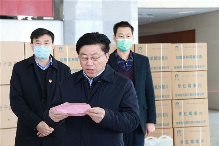 1月30日上午,羚锐制药向市疫情防控指挥部和武汉抗疫一线捐赠100万元现金和400万元物资捐赠仪式举行。市委常委、宣传部长曹新博出席仪式并讲话。