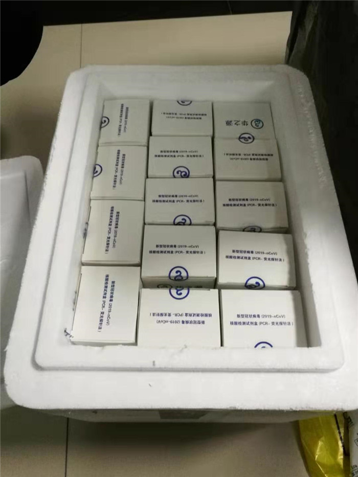 2月1日下午17时,由河南省华之源生物技术有限公司捐赠信阳首批价值20万元的1000人份新型冠状病毒检测试剂盒通过物流到达信阳物流中心,信阳市红十字会专程派员前往提取并在第一时间交付疾控部门投入使用。