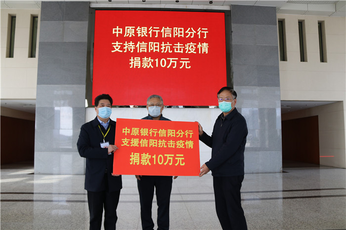 新型冠状病毒感染的肺炎疫情发生后,中原银行信阳分行高度重视,按照中央决策部署,根据市委市政府有关要求,迅速行动,第一时间成立领导小组,制定应急预案,全面落实疫情防控要求,加强金融服务保障、金融科技支持等联防联控措施,助力全市打赢疫情防控阻击战。中原银行信阳分行党委发出倡议后,全行干部职工积极响应,纷纷伸出援助之手,踊跃捐款,全部定向用于信阳市中心医院和市第五人民院采购疫情防控所需物资和设备,共同抵御疫情。