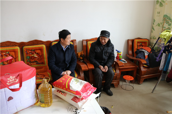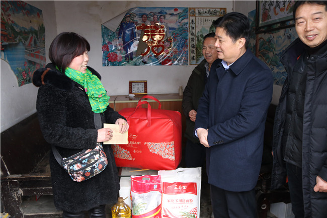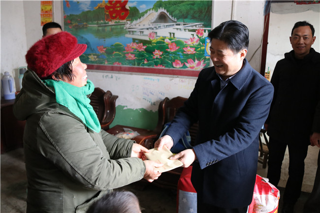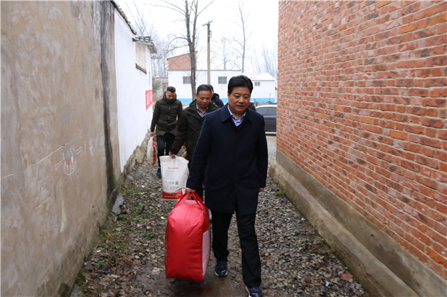 1月11日,信阳市红十字会常务副会长李俊杰带队前往息县关店乡吴陈铺村开展精准扶贫“同行脱贫路 博爱送万家”慰问活动,向73户困难群众发放了米、面、油、棉被等生活物资和慰问金,帮助他们度过一个祥和的新春佳节。