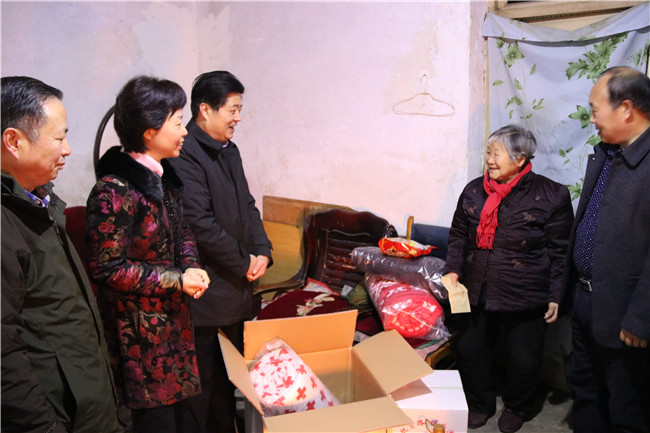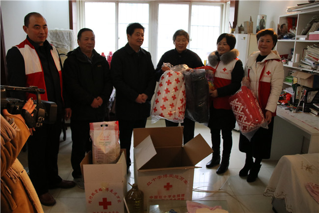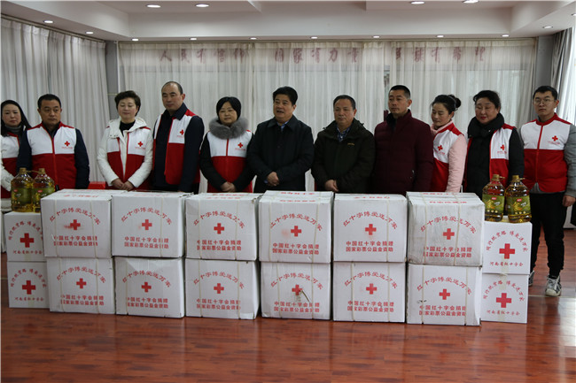 1月14日,信阳市红十字会常务副会长李俊杰带领红十字志愿者们来到浉河区社区组织开展了“同行脱贫路 博爱送万家”慰问活动,走访慰问了社区困难家庭125户,为他们送去米、面、油和暖包等价值2.5万元的生活物资,并送去新春佳节的祝福。