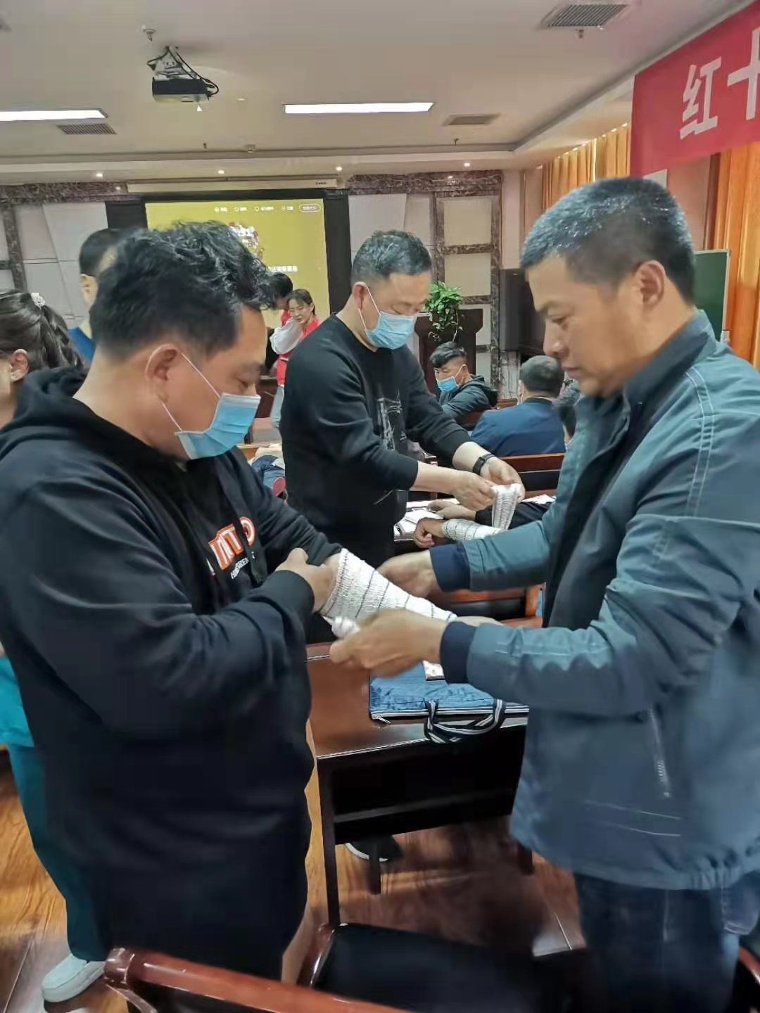 培训采取理论学习和实际操作相结合的方式,首先发放了应急救护知识宣传手册,培训老师采取模拟人示范操作的方式重点讲解了心肺复苏、呼吸道异物阻塞排除、创伤救护基本技能的处理要点,强调了意外发生后现场救护的重要意义。职工们认真听取老师授课,在实际操作时,现场职工积极参与,通过反复练习操作和老师的现场指导,职工的应急救护能力得到明显提高。