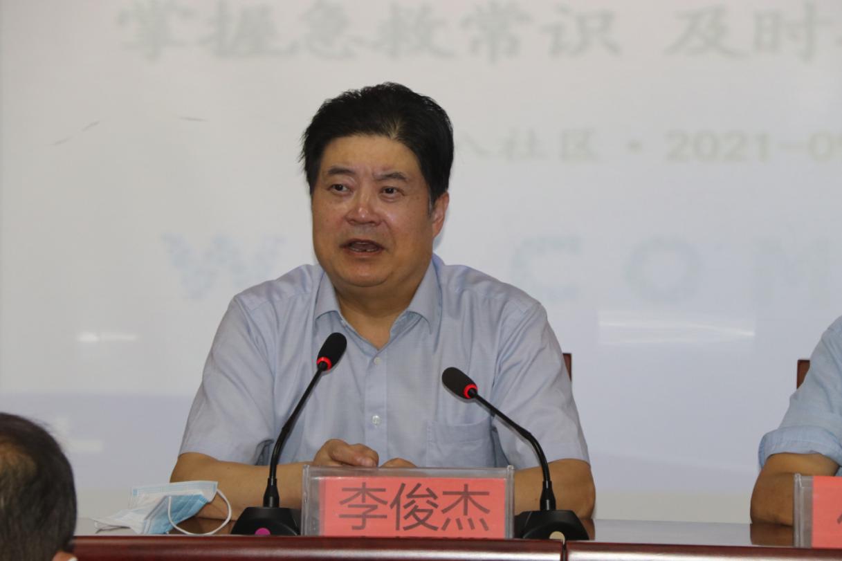 李俊杰对前来参与讲座的人员表示欢迎,指出,红十字进社区是总会和省红会的一项重要活动,旨在提高更多人应急救护能力。应急救护是一项重要的也是每个人必备的知识技能,对于院外急救具有重要作用,掌握应急救护知识不仅是对自己负责,也是对家人负责。下一步,市红会将持续开展应急救护知识进社区活动,使更多人掌握这项技能,同时将积极与相关部门进行协调,在公共场所配备一定数量的除颤仪。