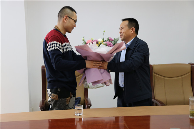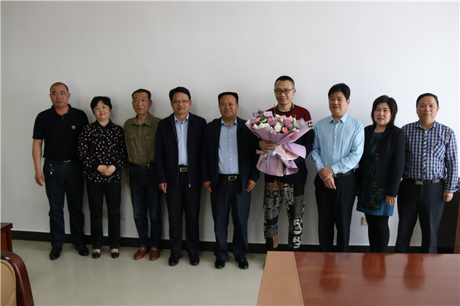 欢迎仪式上,还为捐献造血干细胞志愿者谢春园献了鲜花,发放了慰问金。