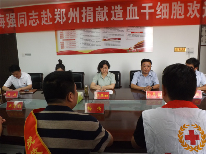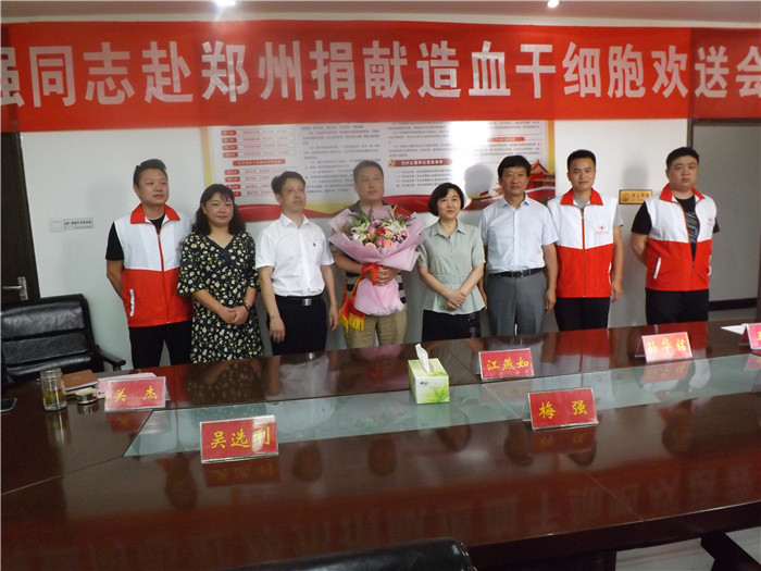 7月17日,我县为造血干细胞捐献者梅强举行欢送会,罗山县人民政府副县长江燕如、县卫建委主任孙华铭、县红十字会会长关杰、县人民医院院长王俊、县文明办以及罗山县捐献造血干细胞志愿者代表参加欢送会并作重要讲话。