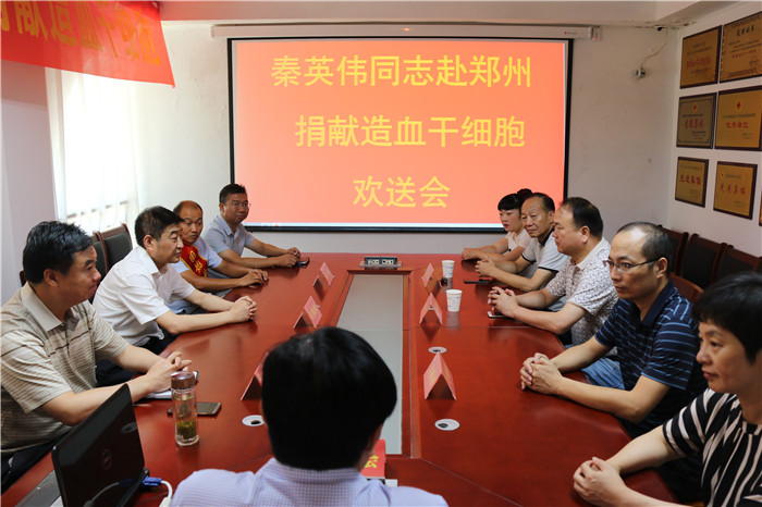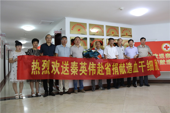 7月21日上午,固始县人民政府举行秦英伟同志赴郑州捐献造血干细胞欢送会。县长级干部、县红十字会会长汪保俊、县委宣传部、文明办、民政局、红十字会和段集镇负责人出席欢送会。