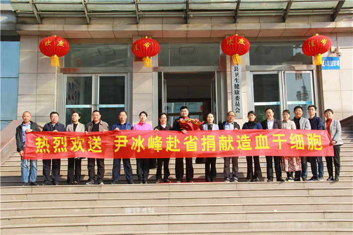 县政府副县长徐晶同志代表县委、县政府致辞:造血干细胞捐献诠释了红十字人道救助理念,传播了红十字“人道、博爱、奉献”的精神。尹冰峰同志即将要奔赴郑州,踏上爱心之旅。榜样的力量是无穷的,尹冰峰同志的模范行为必将带动更多的爱心人士加入到志愿者队伍中来,支持公益、奉献爱心!必须将带动更多的有爱之人投身到捐献造血干细胞这项造福人类、惠泽天下的崇高事业中,把爱心传遍天下、把真情播撒人间。生命因奉献而美丽,社会因关爱而和谐。我坚信,只要人人都献出一点爱,世界将变成最美好的人间!最后,祝尹冰峰同志赴郑州捐献造血干细胞,一切顺利!