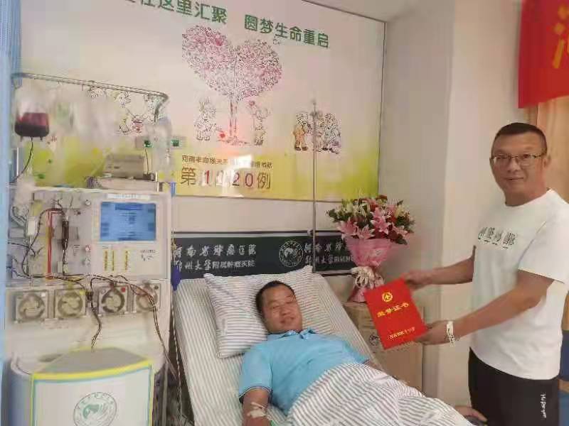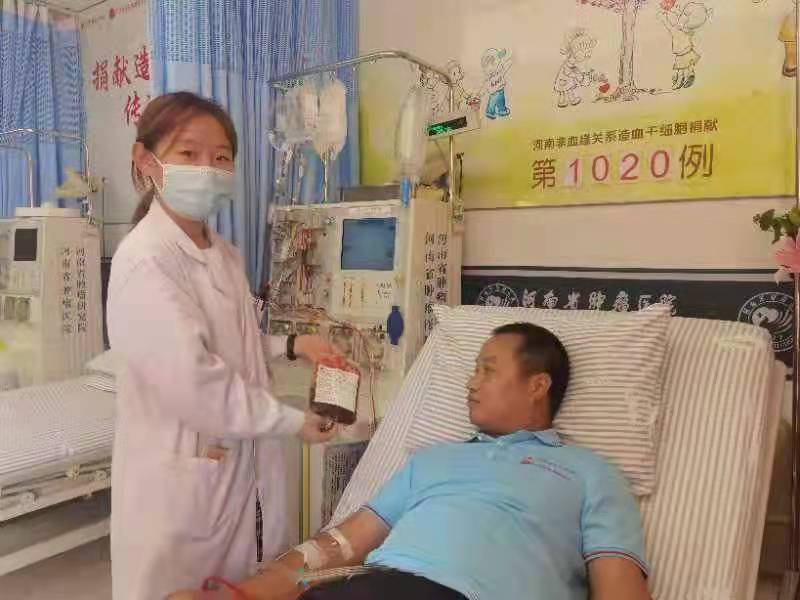 献血113次的“献血达人”赵彦青9月13日在省肿瘤医院捐献造血干细胞,救助一位16岁花季少年血液病患者的生命。赵彦青成为河南省第1020位造血干细胞捐献者。