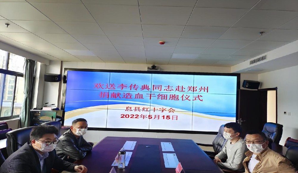 2022年05月15日上午,息县红十字会举行了一场特别的欢送会,欢送造血干细胞捐献者李传典同志踏上赴郑州爱心之旅。县红十字会常务副会长李煜主持会议,县卫健委宣教股、爱卫股及县红十字会全体成员出席会议。