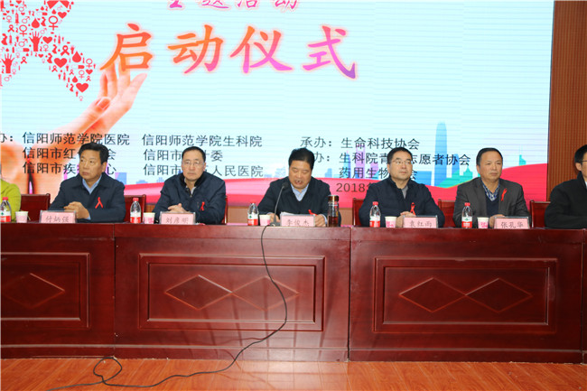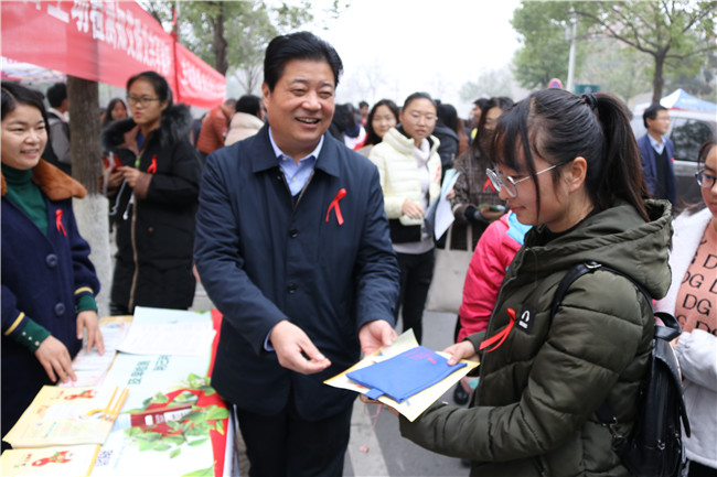 12月1日,河南省信阳市红十字会联合信阳师范学院校医院、市卫计委、市疾控中心在信阳师范学院开展“世界艾滋病日”主题宣传活动,让大学生们对艾滋病有了更深的了解。市红十字会常务副会长李俊杰参加活动。