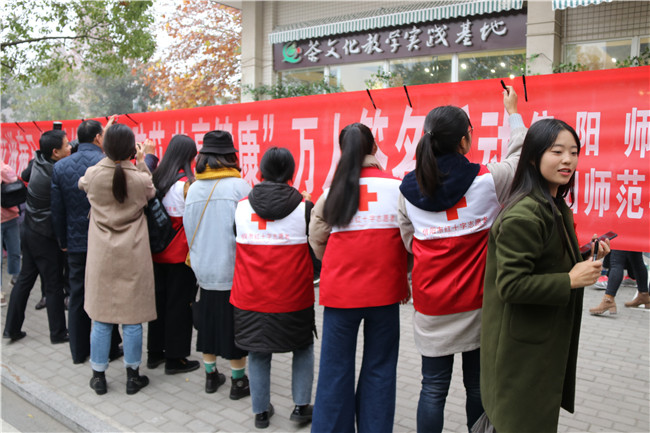 此外,来自市疾控中心、市第五人民医院、学院校医院、浉河区疾控中心等单位红十字志愿者们在校园开展了展板宣传、悬挂横幅、咨询服务、签名和发放宣传资料、安全套等系列宣传活动。来自该校师生代表共1000余人参加了活动。