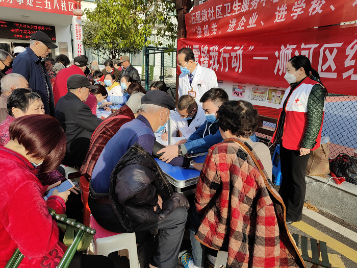 活动现场,前来咨询、问诊的社区居民络绎不绝。其中,许多慕名而来尤其以老年人为主的居民一大早排起长龙,等待义诊和医生的解答。来自交通医院的医疗专家志愿者们为社区居民开展了义诊、义检和健康咨询等服务,为他们免费提供测血压血糖、B超检查、心电图检查、指导安全用药等服务。