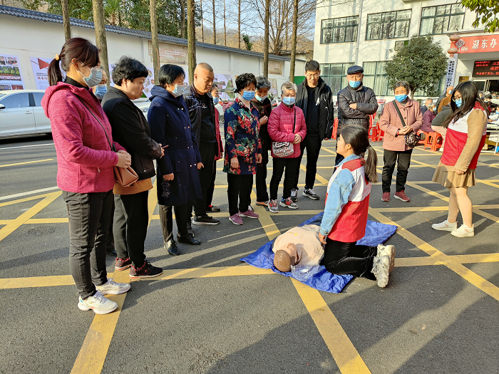 在现场红十字应急救护培训工作人员用通俗易懂的方式向居民讲解心肺复苏、气道异物梗阻处置等应急救护技能,并进行实景模拟演练操作,通过演练有效提高了社区居民面对突发事件的自救互救能力。同时,红十字志愿者们还向社区居民发放了红十字知识以及应急救护、卫生健康等宣传材料,以增强社区居民的疾病防治和保健意识,营造了一种以人为本、人道关怀的文化氛围。