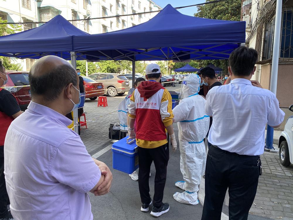 积极参与常态化疫情防控工作。5月9日上午6时,市红十字会志愿服务队深入前卫社区白高庙小区,开展疫情防控全员核酸检测。按照任务分工,抽调1人编入流动入户采集组,在2个固定采集点分别安排2名志愿者,负责测量体温、指导群众手机扫码填写个人信息、领取核酸检测采集码、维持现场秩序等。活动期间,严格落实检测流程,测温入场细致,采集码生成高效,引导规范有序,采集秩序井然。截至14时,圆满完成小区1300余人核酸检测任务。