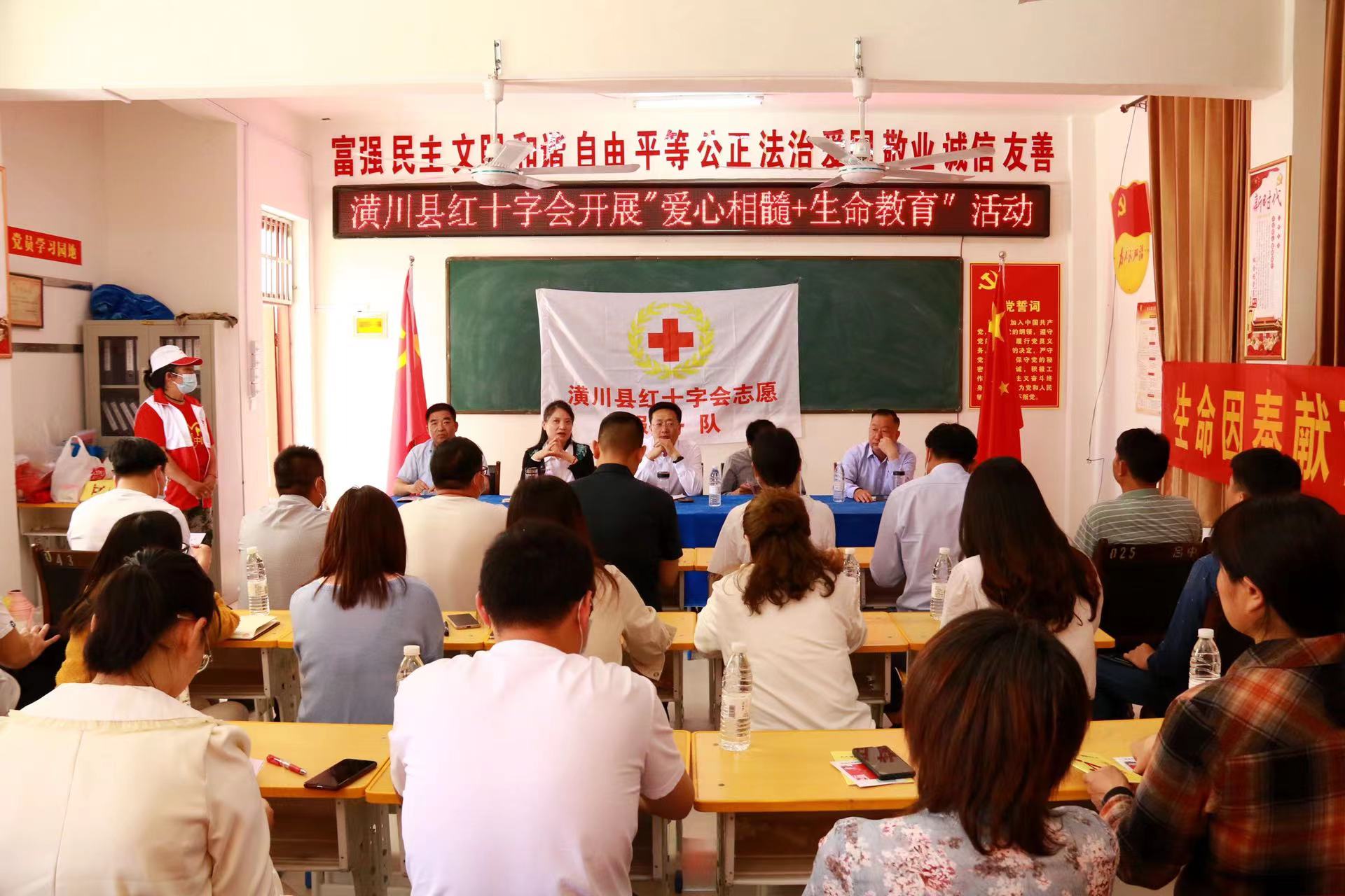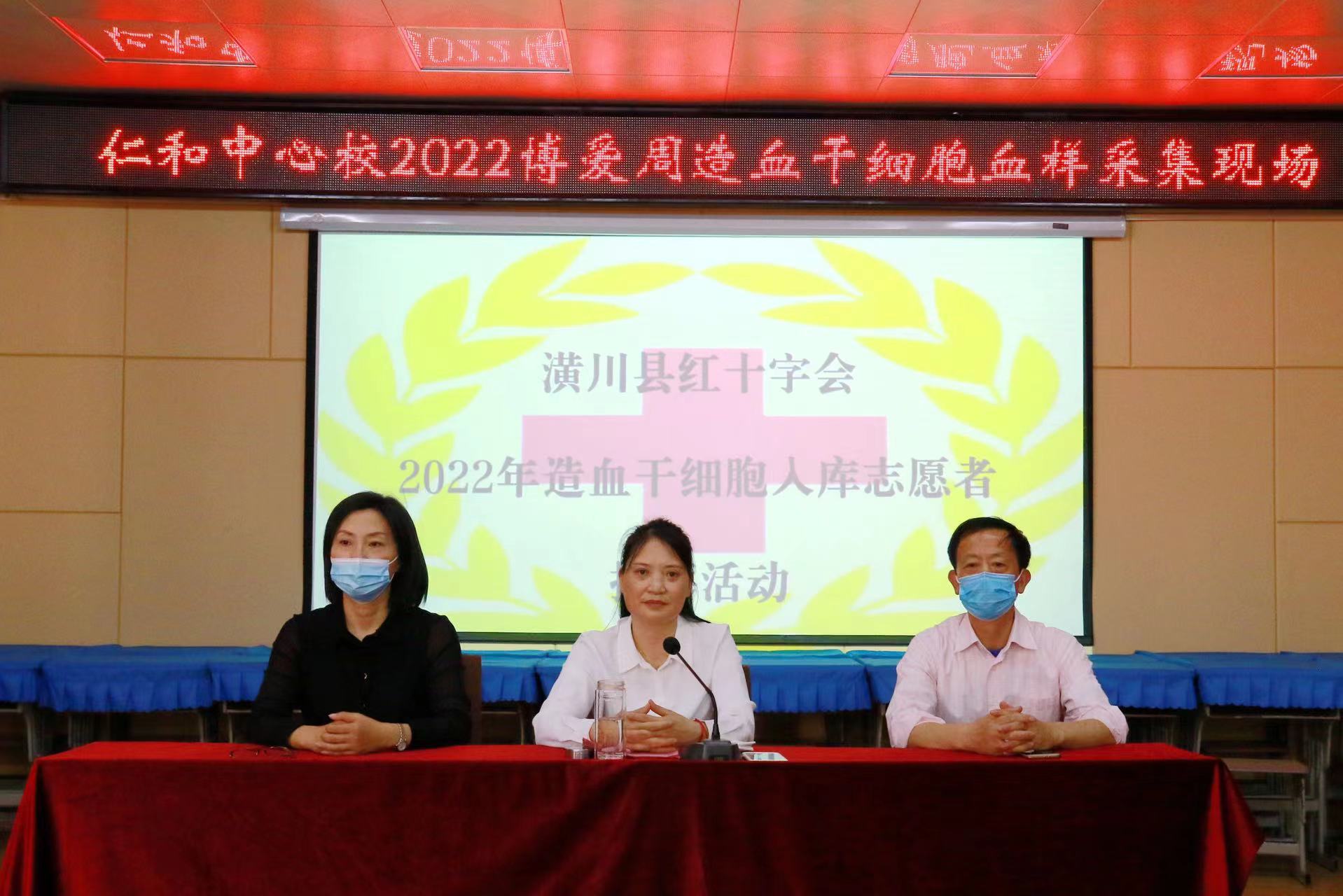 潢川县红十字会联合教体局、乡政府、县蓝天救援队志愿者服务队、“公之益”协会志愿者们、爱心企业代表洋河股份公司等社会志愿者们共同走进行小吕店中学和仁和中心校、中心小学,开展造血干细胞捐献血样采集、应急救护知识培训、宣讲红十字精神等活动。