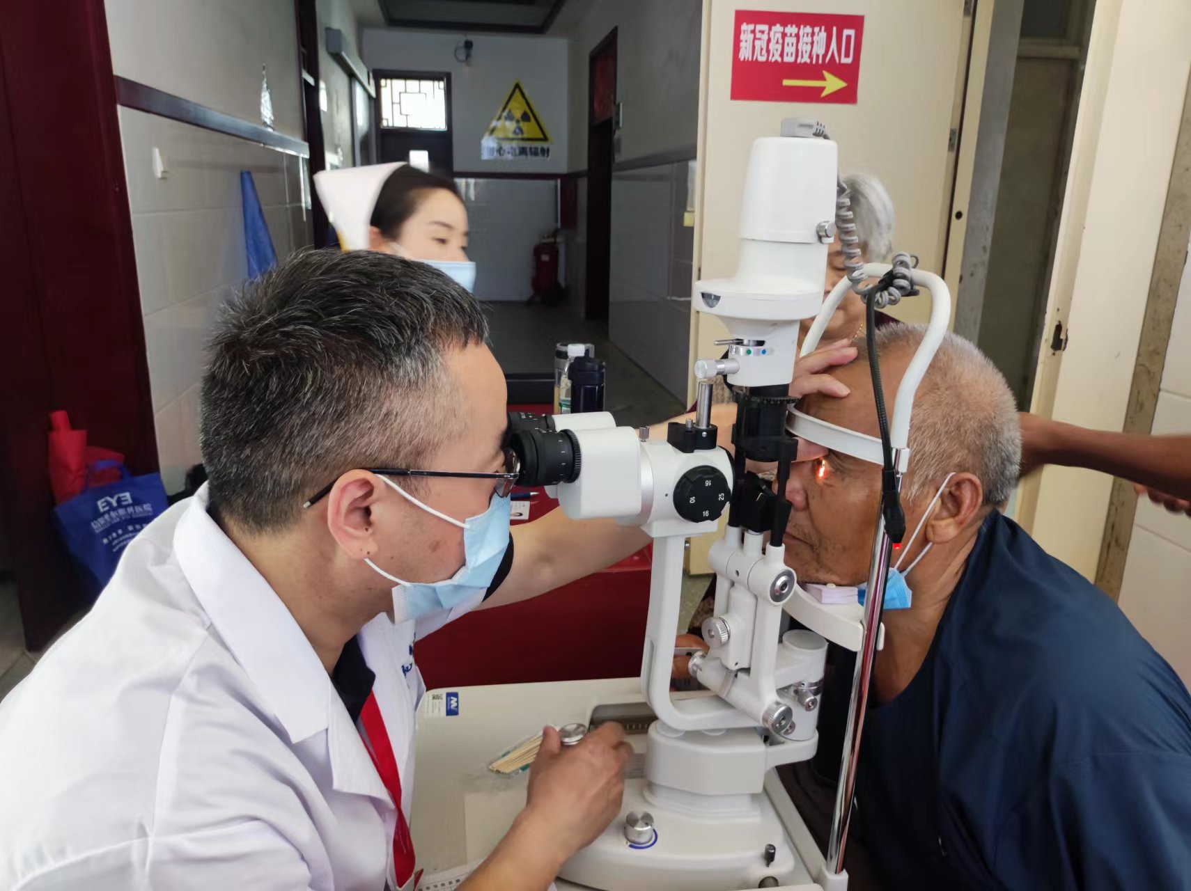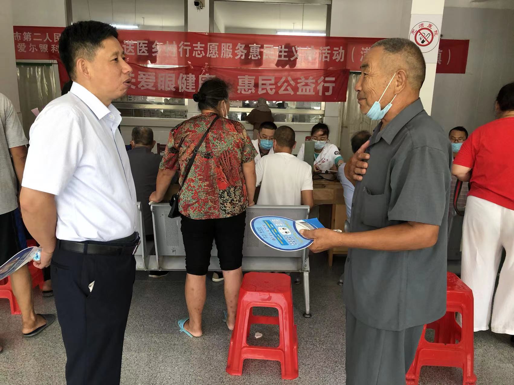7月14日,市红十字会党组书记陈明清带领信阳市第二人民医院和信阳爱尔眼科医院20余名医疗专家志愿者,按需求分别组队分赴踅孜镇卫生院和来龙乡卫生院开展义诊和视力筛查活动。针对当地群众患病情况,市红会送医志愿服务队选派康复科、心血管科、中医科、内科、眼科、内分泌科、急诊科、外科等专家,现场为老百姓提供优质贴心的诊疗服务。各位专家的桌子前都围满了前来咨询就诊的群众,无论是常见病,还是疑难病,专家们都耐心解答,他们细致周到的服务,赢得了就诊患者的一致称赞。