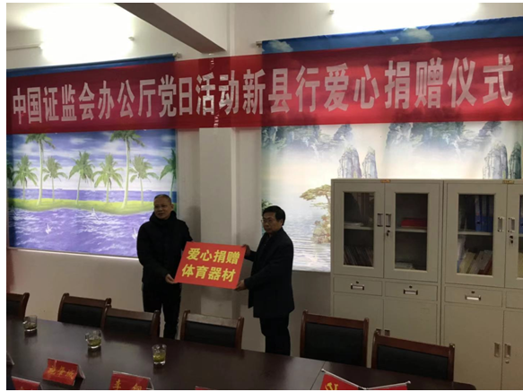 此次捐赠活动是中国证监会办公厅到新县开展的主题党日活动,主要由新县红十字会负责组织协调,在前期认真调研摸底的基础上针对办学条件落后、体育设施匮乏的学校开展的人道救助。活动为浒湾乡初中捐赠了篮球、足球、羽毛球拍、乒乓球拍、跳绳等体育用品价值共计1.2万元。一定程度上改善并满足了浒湾乡初中缺乏体育器材的教学需求,使学校学生可以安心地锻炼使用,增强学生体魄。