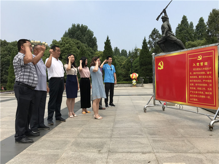 为庆祝中国共产党成立98周年,喜迎建国70周年,6月26日,新县红十字会机关党支部与吴陈河镇阳土墩村党支部党员干部赴红色革命圣地——红安县黄麻起义和鄂豫皖苏区革命烈士陵园,共同开展“不忘初心做表率、牢记使命勇担当”庆“七一”主题活动。